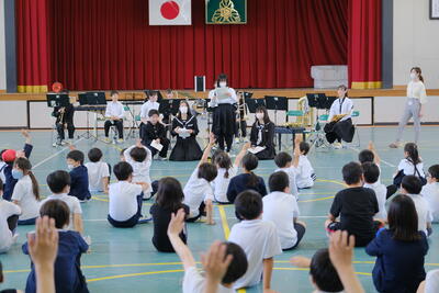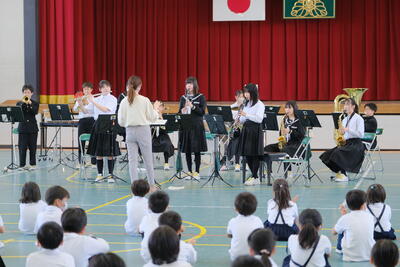 小中連携事業として、柏原中学校吹奏楽部のみなさんの演奏を鑑賞させていただきました。