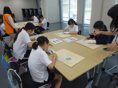 ご住職より、お話を聞いた後、写経に取り組みました。