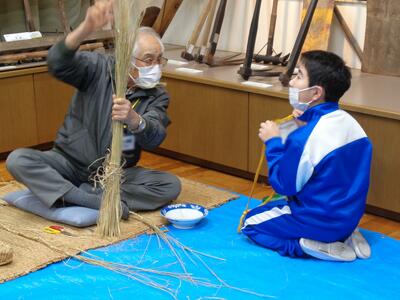 石臼、縄ない、火鉢と3つのグループに分かれて体験しました。