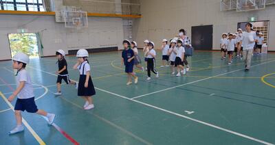 どの学年も、しっかりと守って、避難場所の体育館に入ってきました。