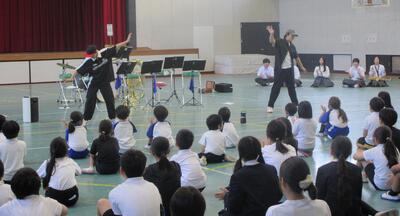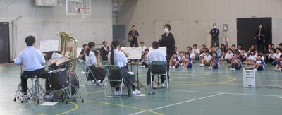 吹奏楽部。小学生のみんなも知っている人が多いだろうと思われるような選曲で楽しませてくれました。