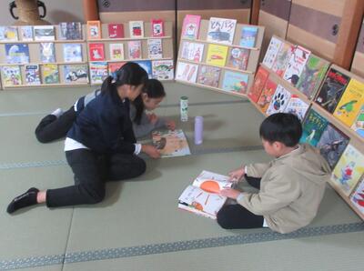 今日は図書ボランティアの皆様が「えほんのひろば」を開催してくださいました。