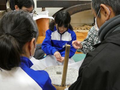 石臼の重さを感じながら、みんなで回す楽しさ、などなど、