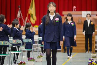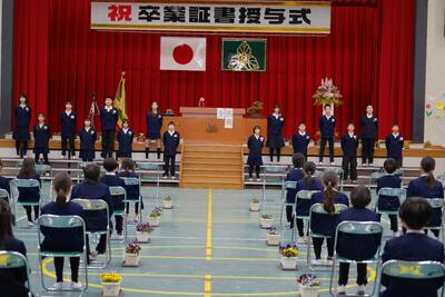 全校児童や全職員に見守られ、17人の卒業生が巣立っていきました。