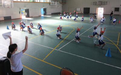 ダンス部。途中、見ている小学生から手拍子が入ったり、「かっこいい」と声がかかったりしました。